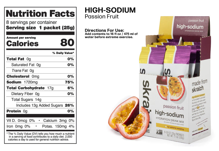Based on the electrolyte composition of Skratch High-Sodium, this mix might be best for you if you have a sweat composition around the range of 110-130 mg/oz.