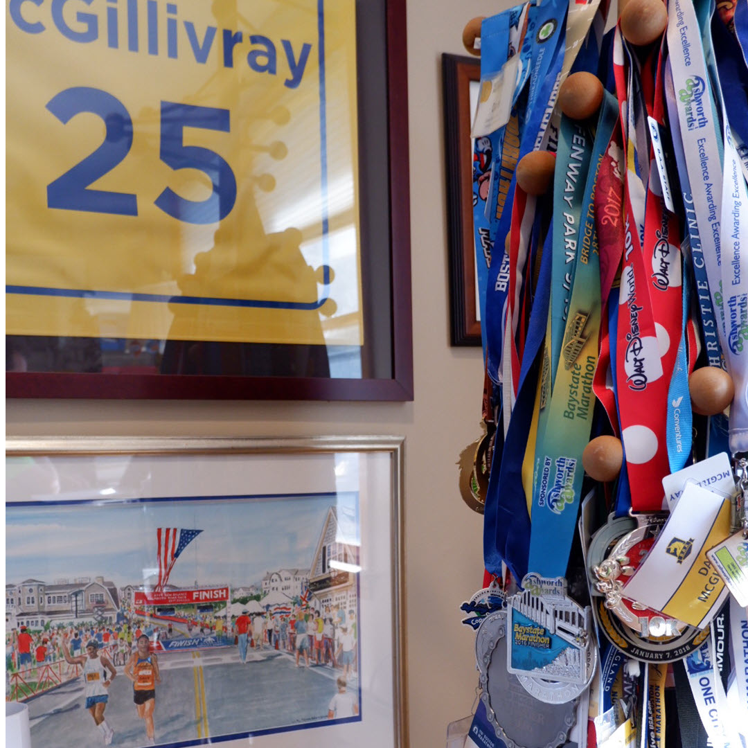 McGillivray is a man whose list of achievements almost seems unbelievable if there weren’t proof. A lifelong runner and triathlete, race director, philanthropist, fundraiser, and public speaker, he has a resumé that’ll leave you wondering if he is, in fact, Superman. Although he’ll tell you he isn’t, it’s remarkably clear that his superpower is his steadfast belief that anyone can achieve anything if they set a goal, work hard, and earn the right to achieve it. This is a man who attempted the Boston Marathon for the first time when he was just 17 years old, too young to have an official bib, and did not finish the race. He returned the next year and vowed he would run the race every year for the rest of his life. He ran for the next 15 years up until he was offered the Race Director position for this historic race and accepted the fact that he would be trading in his race bib for the Director title moving forward. Standing at the finish line of the 1988 Boston Marathon where he had directed the race for the first time, he couldn’t overcome his feelings of regret for not running the race. Once the last runner crossed the finish line he asked a state trooper to drive him back to start line. When the trooper asked if Dave had forgotten something, he responded “yeah, I forgot to run”. He has now run 50 consecutive Bostons, 35 of which while working as race director and running the race in the dark after the rest of the field has finished.