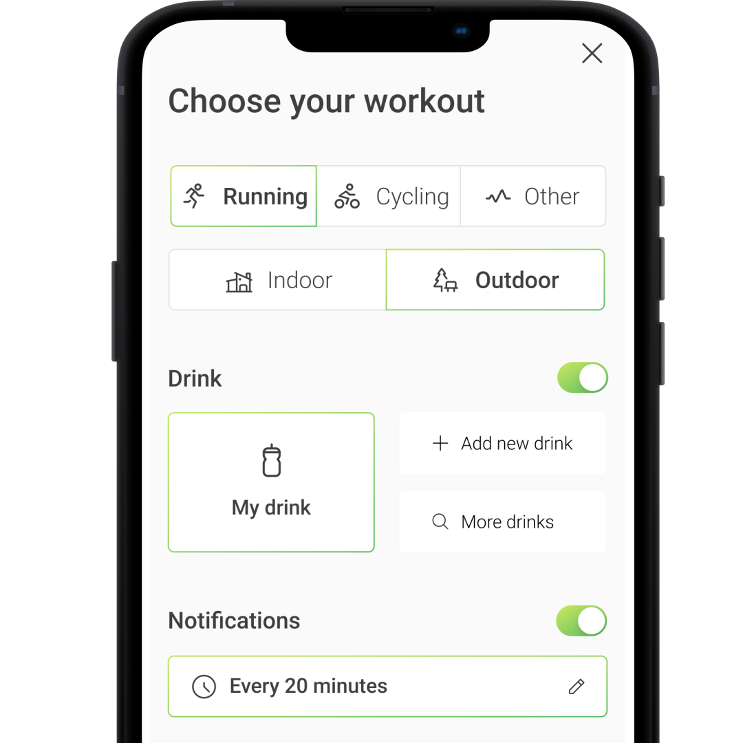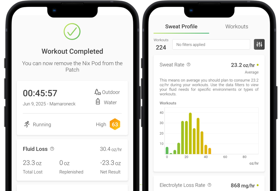 Within the app, select the type of workout you're doing and set your notification preferences. As a reminder, do not wear your Hydration Biosensor unless you are actively sweating. We recommend endurance athletes use Nix for workouts of 45 minutes or longer.
