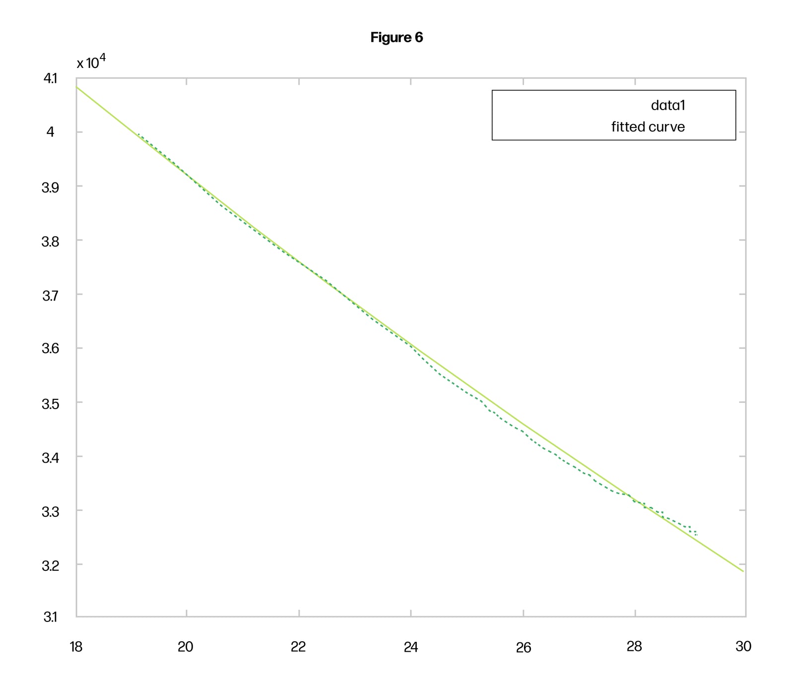 Figure 6. During model for temperature sweep, the equation that describes the best fit line is the temperature-correcting algorithm.