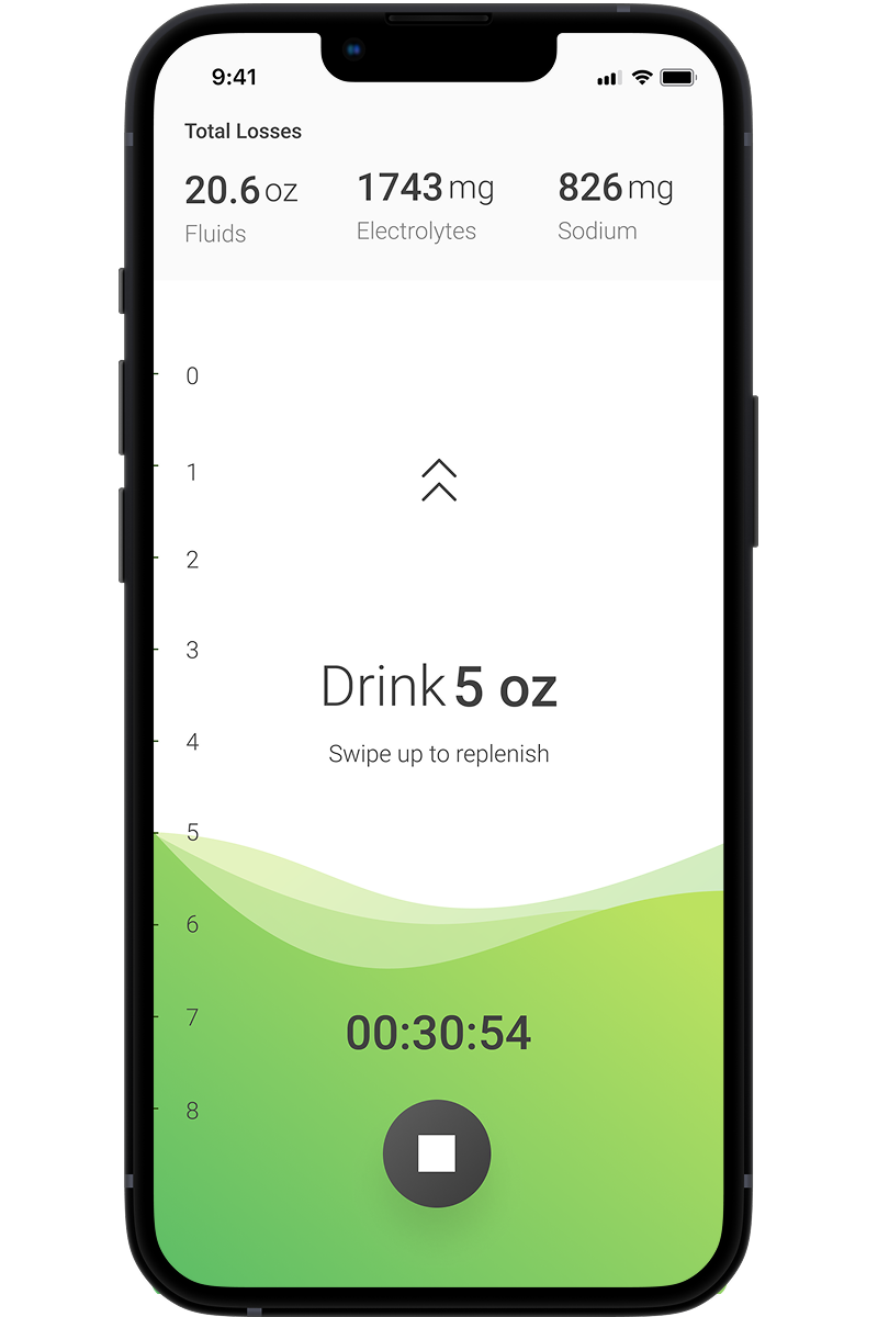 No more trial and error to identify your optimal hydration strategy. Our revolutionary hydration biosensor, paired with the Nix Solo app, quantifies fluid and electrolyte losses moment-by-moment and sends notifications to your phone, watch, or bike computer to tell you exactly when, what and how much to drink. So you can focus on what really matters - your workout.