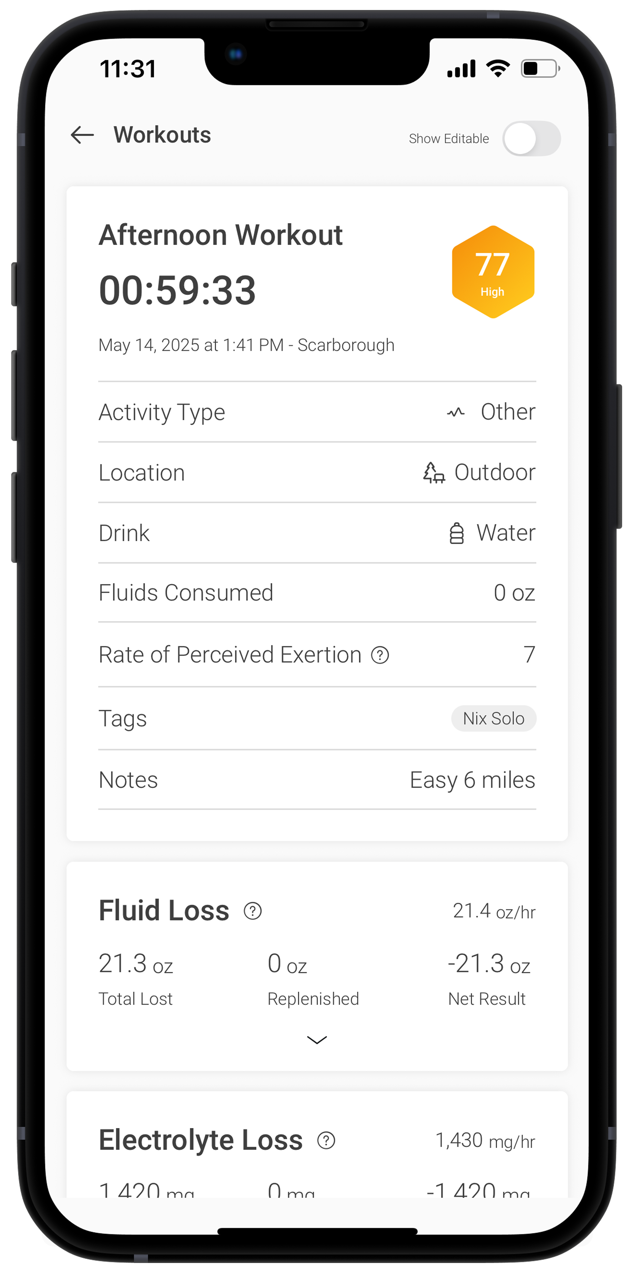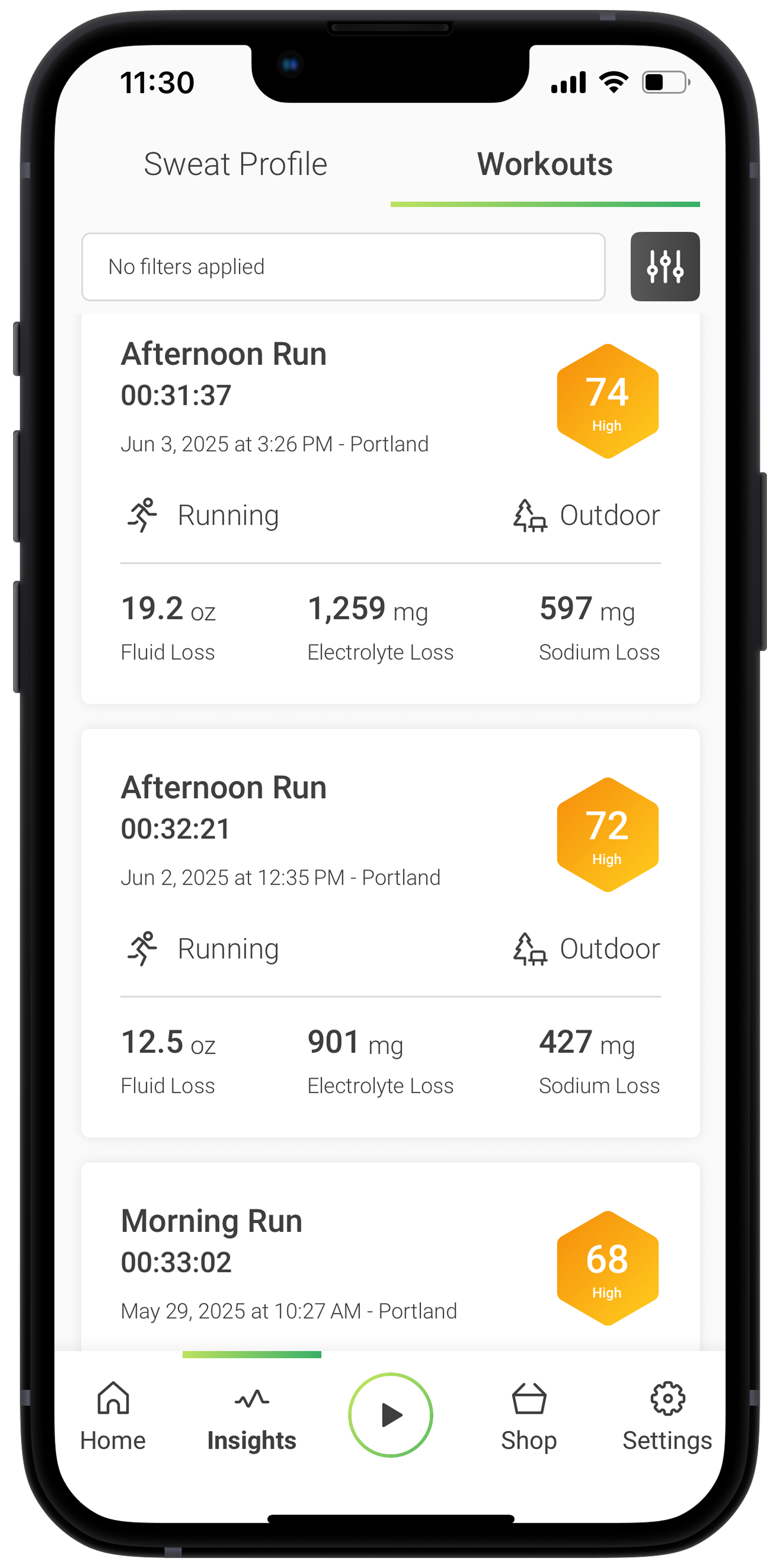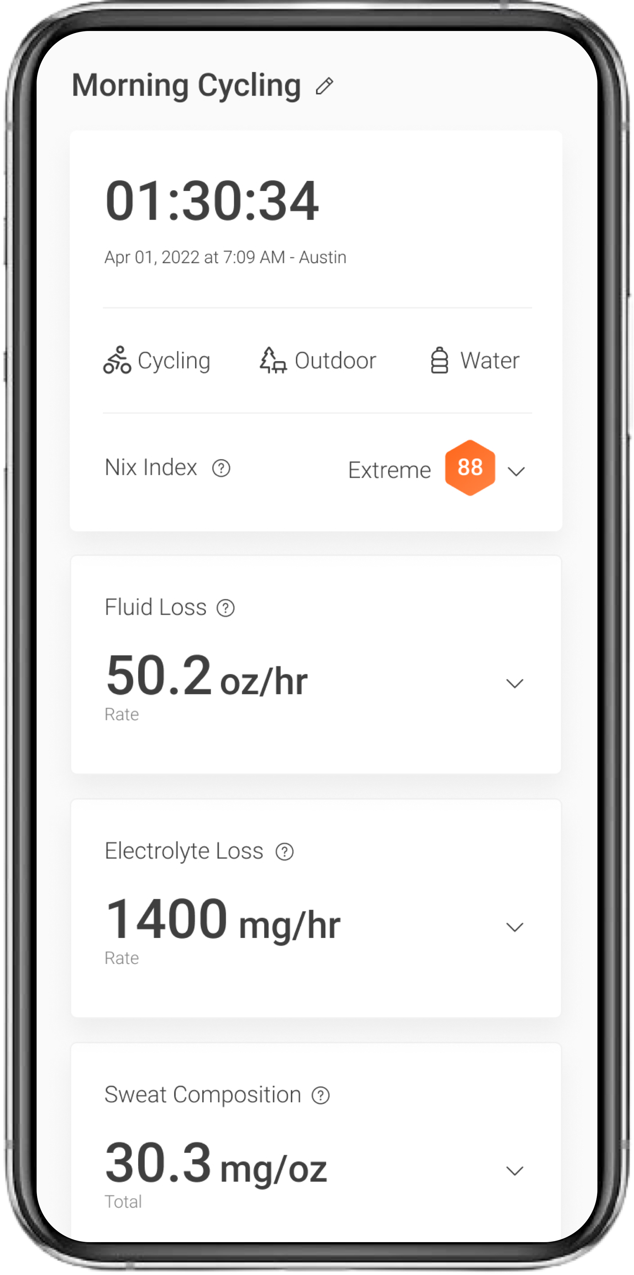 The Nix app analyzes your personal sweat profile to provide actionable data during your workout and helps you prepare for your next one.