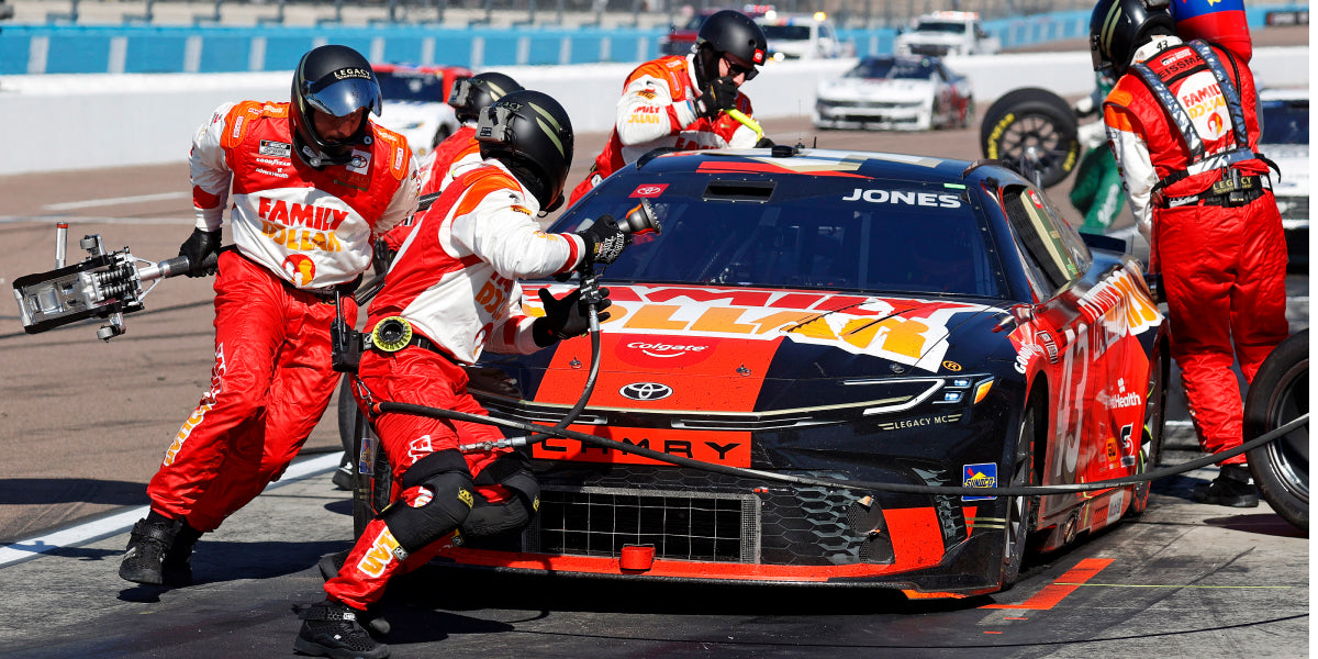 In a NASCAR Cup Series race, only five over-the-wall crew members are allowed to service the car during a pit stop. These team members typically include a Front Tire changer, Rear Tire Changer, a Tire Carrier, a Jackman and a Fueler. As each of these crew members have a designated role, their ability to perform quickly, with precision, and underpressure, is critical to the success of their car. A typical four tire pit stop takes around 12 seconds. Behind the wall, other crew members support the team to help monitor data, adjust race strategy, guide the driver and handle backup tools, gear and tires.